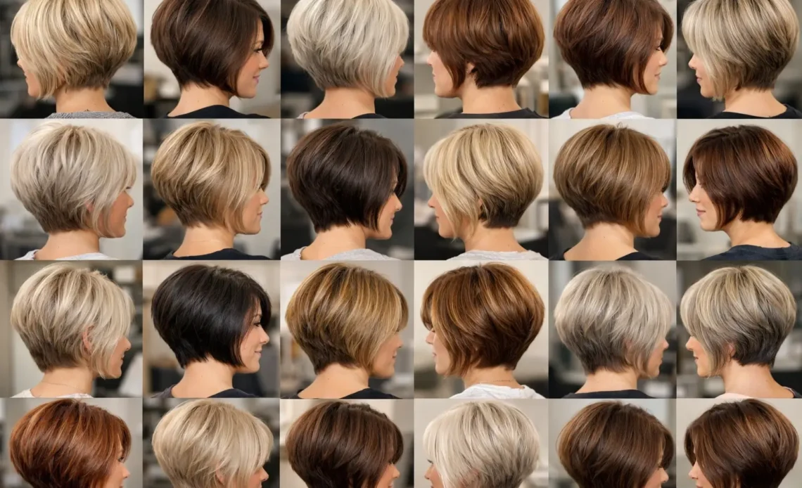A shorter version of the stacked bob enhances volume at the crown while keeping maintenance simple.