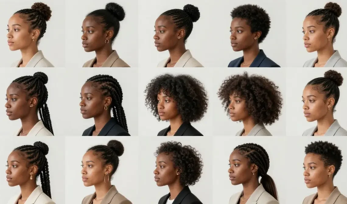 Sleek buns, braids, and twist styles are among the best options for professional settings.